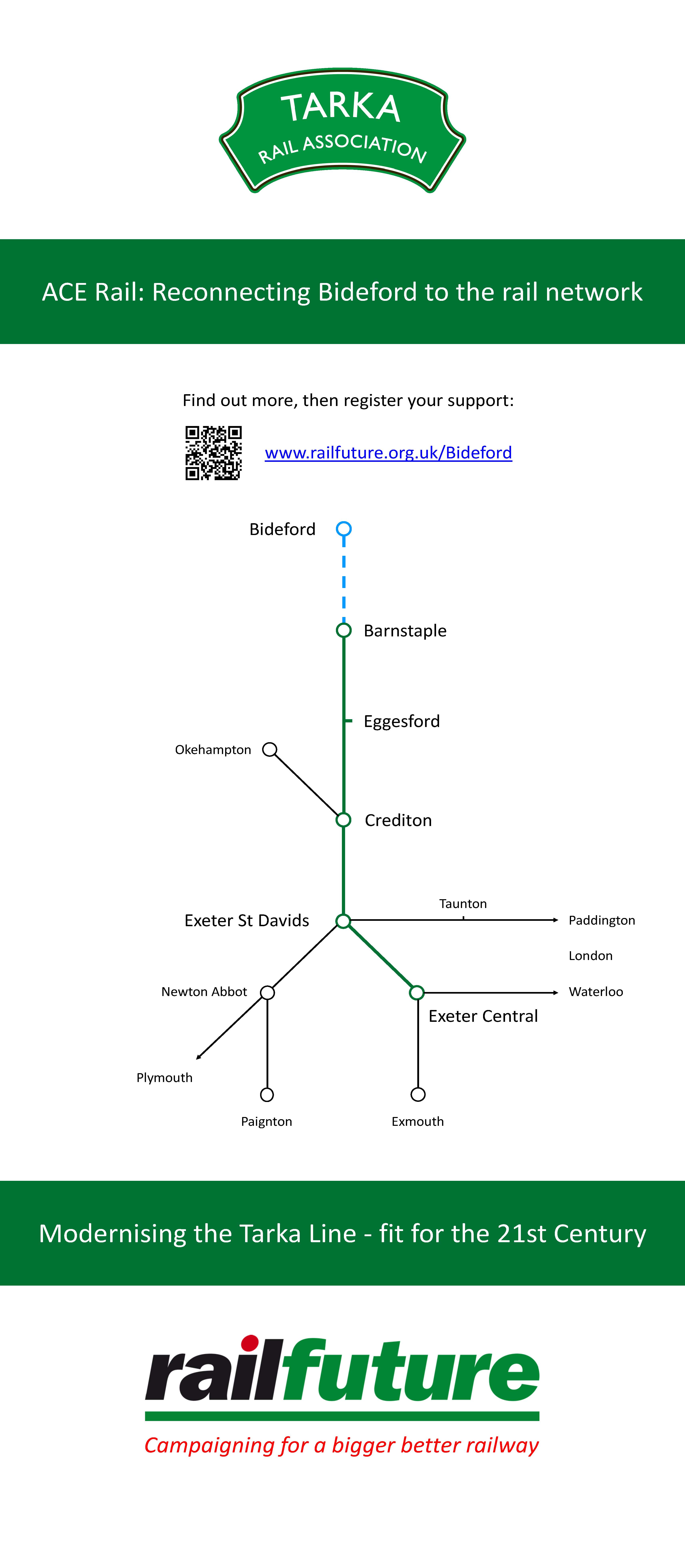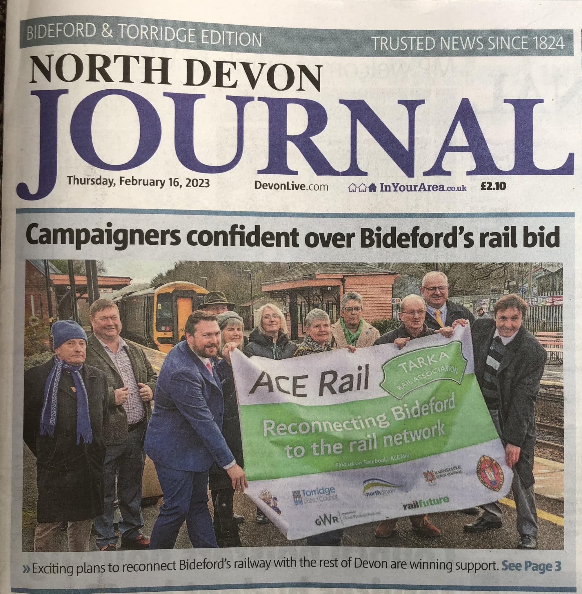 - April - Proposals to define an initial business case for a Bideford-Barnstaple-Exeter fast rail link were returned, in response to the request from ACE Rail campaign lead Tim Steer, by Jonathan Roberts Consulting, on the 4th.
