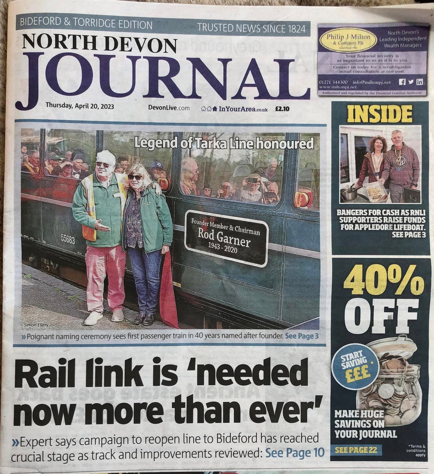 - February - local historian and councillor Peter Christie writes about BRHC and bringing back a working rail line between Bideford and Barnstaple in the North Devon Journal, on the 17th.