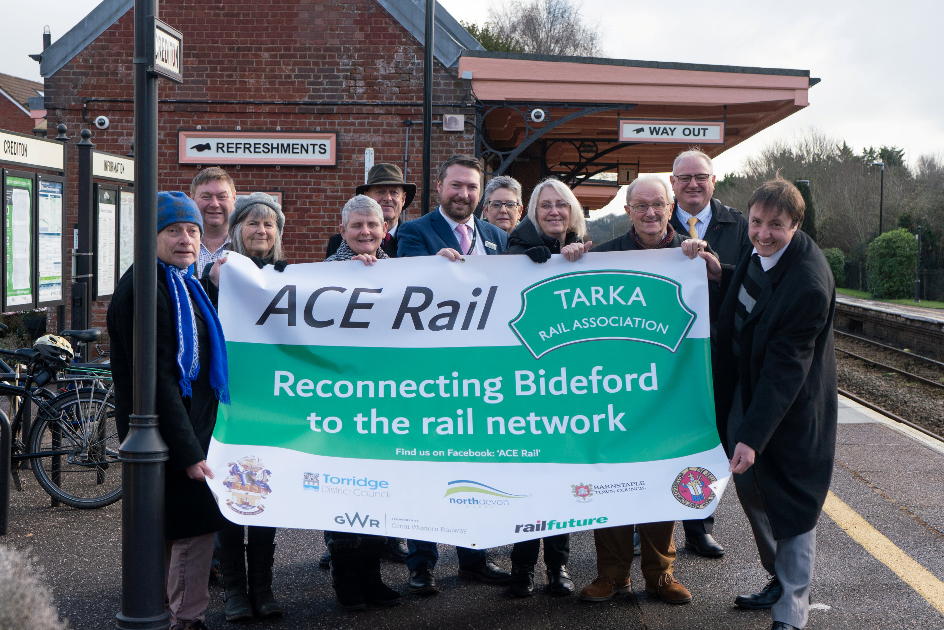 - April - at Bideford Town Council's Annual Parish Meeting the report from the Decarbonisation & Environment Committee Chairman Cllr James Craigie included a paragraph on "the work by ACE Rail to reconnect Bideford to the mainline rail network", on the 19th.