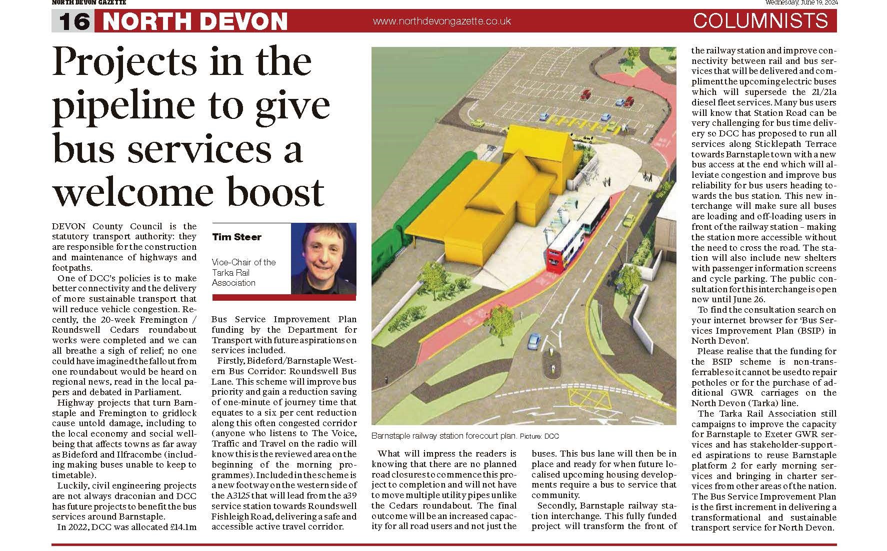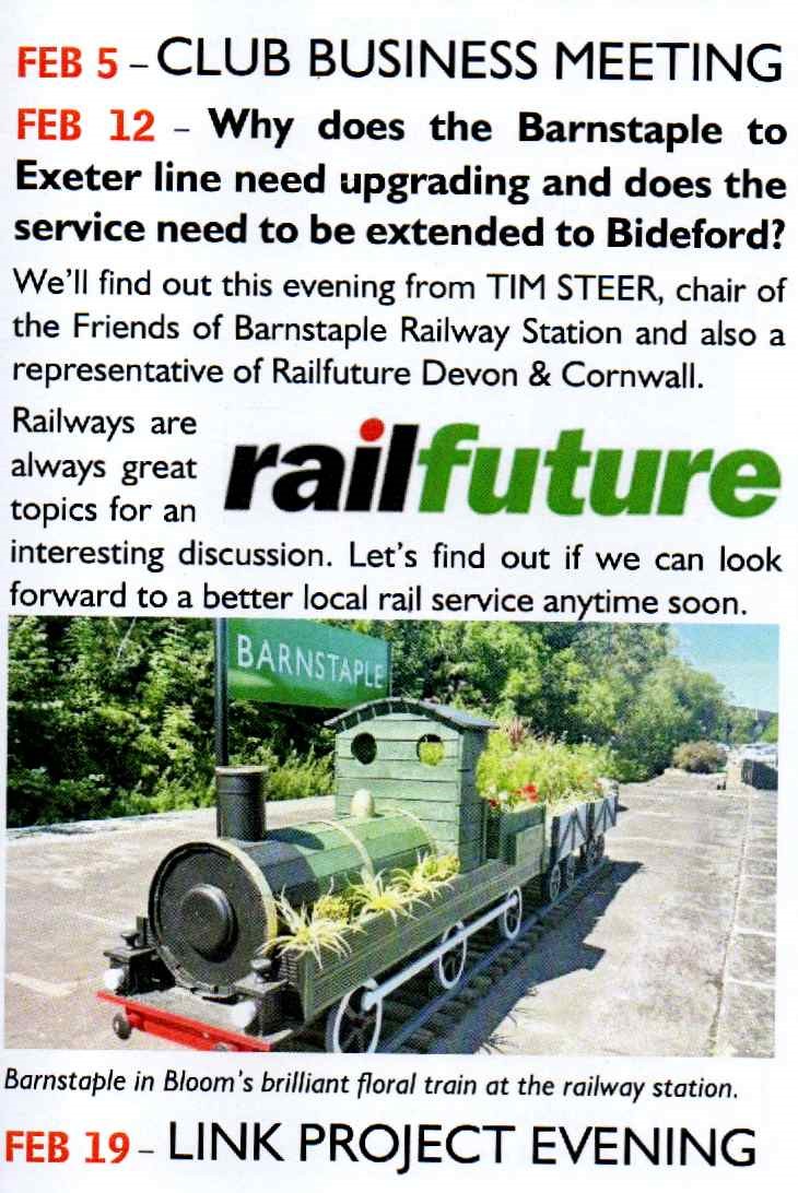 - January - "North Devon rail update: milestones, new trains and future plans" wrote Tim Steer (Railfuture's Devon & Cornwall regional branch Chair) in North Devon Today, on the 9th.