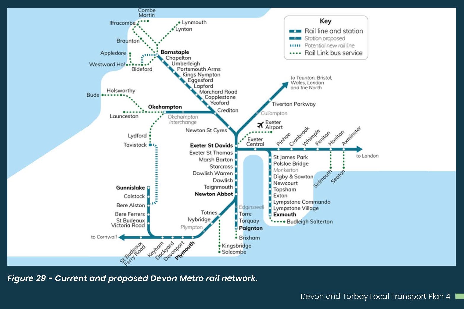 The new Devon & Torbay Local Transport Plan 4 for 2025-40 was also adopted at the Board meeting on 28th July (Agenda item 8 and printed Decision 8, printed Minute 16) and includes a new map for "Current and proposed Devon Metro rail network". See press release from Northern Devon Railway Development Alliance and Devon Live news article.
