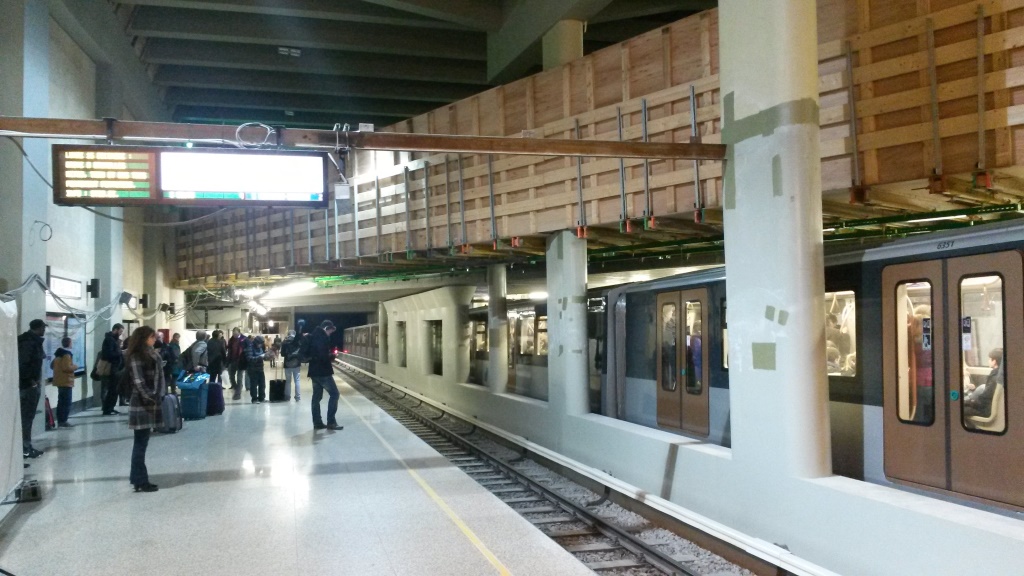 This view from a Métro platform at Schuman station shows the new bridge crossing the tracks that will carry the new train service to the airport.
