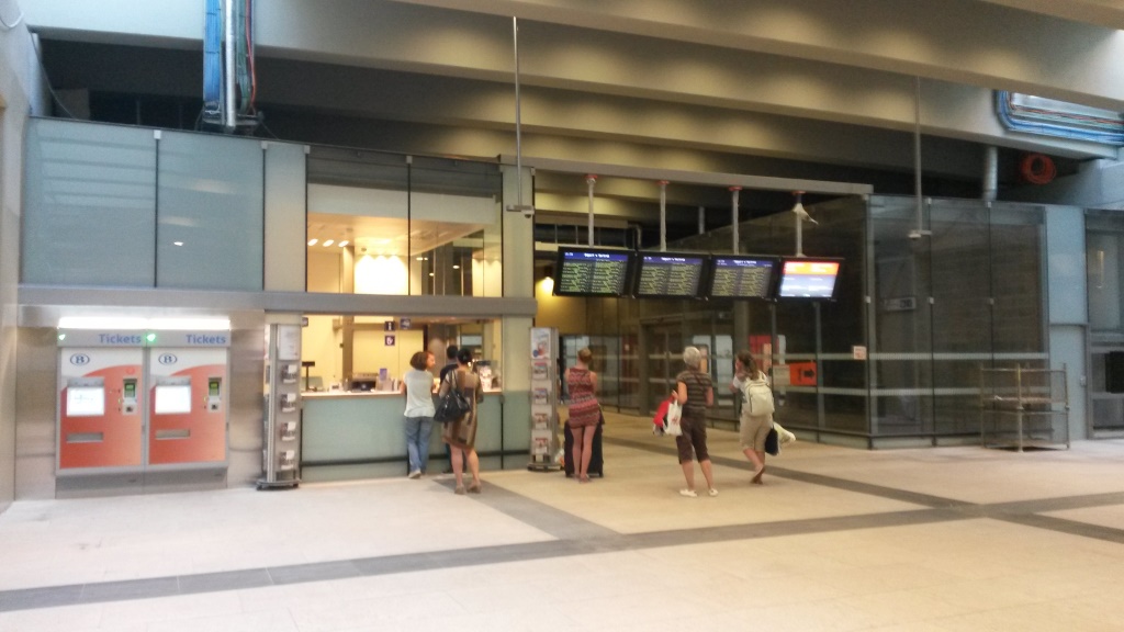 Rebuilding work at Schuman station had seen the ticket office temporarily moved to a portacabin but as construction works near completion it is back inside the station again.