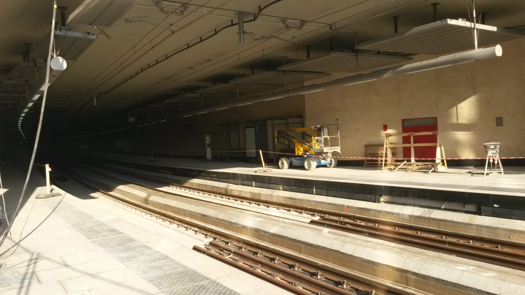 The two new airport-line platforms at Schuman are almost complete – four months before opening.