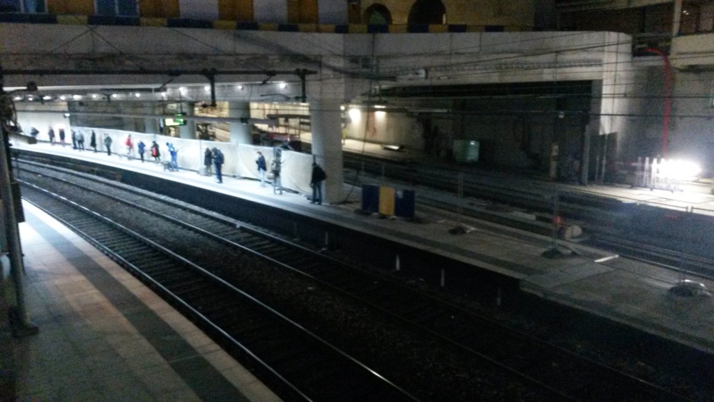 This night-time shot from outside Schuman station five months earlier shows the new route (in darkness) next to the brightly-lit existing route.
