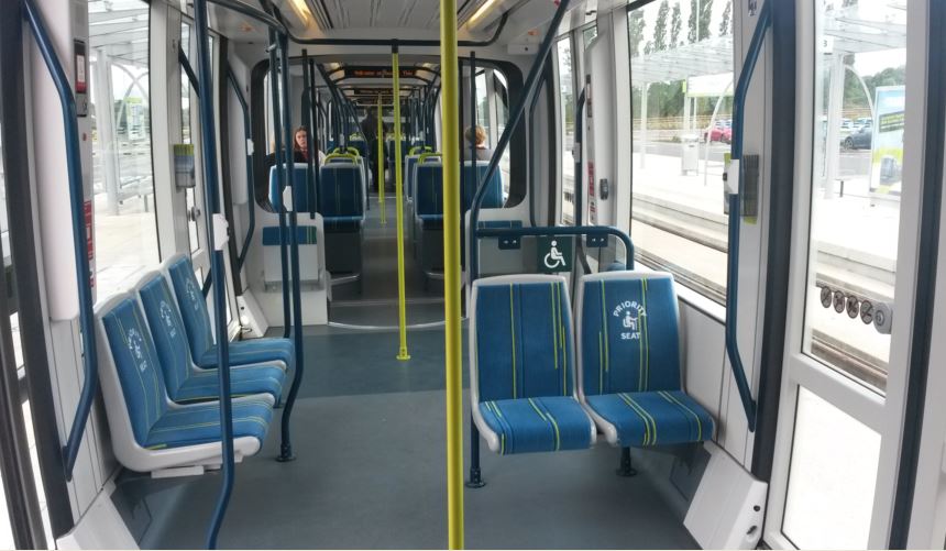 NET Tram priority seating showing ease of access for people with restricted mobility.